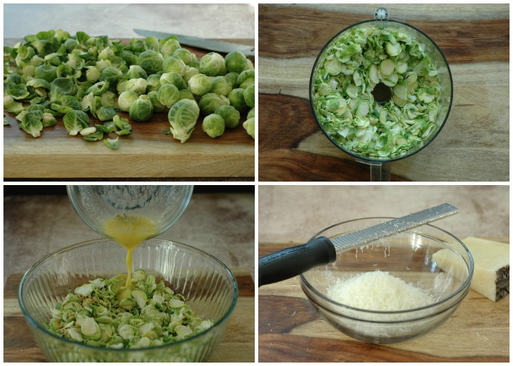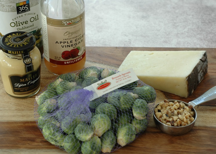I start by slicing off the ends of a pound of Brussel sprouts and then peeling off and discarding the outer leaves. I slice each trimmed sprout as thinly as possible using either the slicing blade of a food processor or a very sharp knife, and then I toss the resulting mixture of shredded outer leaves and slice of inner cores in an apple cider-based vinaigrette. After letting the mixture sit for 10 minutes (in order to allow the sprout pieces to absorb the vinegar, which mellows their raw cabbage-like flavor) I add some chopped walnuts and shredded Pecorino Romano cheese.