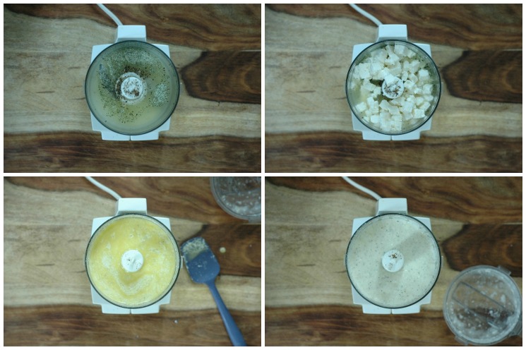 4. While the pasta is cooking, make the vinaigrette: In the bowl of a mini food processor, place the lemon juice, herb salt, and pepper. Add the crumbled feta cheese, and then process the mixture until it is smooth. Add the extra virgin olive oil to the bowl and process again, scraping down the sides as necessary, until you have a smooth, creamy dressing. (If you don’t have a mini food processor, follow the instructions using a bowl and a whisk.) Scrape the dressing into the bowl with the vegetables.