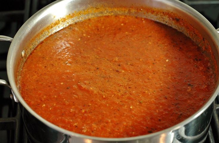 1. Prep the tomatoes: Process the tomatoes in a blender or food processor until they have the consistency you prefer (i.e., less processing for a chunky marinara or more processing for a smoother one).* Set aside.