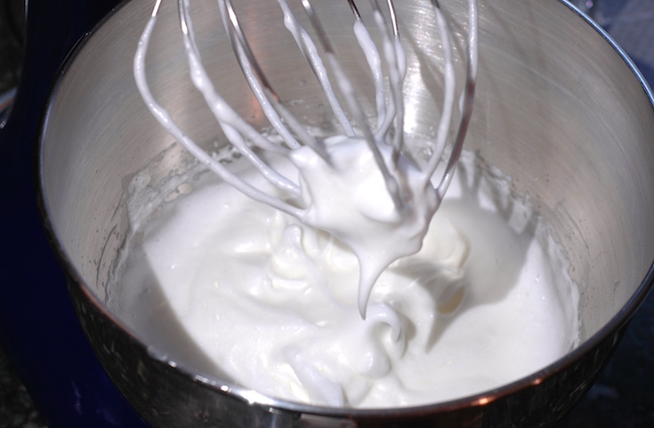 3. Place the egg whites and cream of tartar in a clean, dry bowl. Using a mixer on medium-high speed, beat the egg whites until soft peaks*** have begun to form. Add the sugar to the bowl and then continue to beat the egg whites until stiff peaks have formed.*** (You can also beat the egg whites by hand using a whisk, but it will take longer to bring them to the appropriate consistencies.)