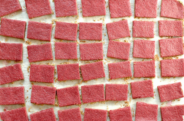 Finally, I tried to make the recipe a little more user-friendly. Instead of relying solely on fresh raspberries, which can be hard to find, are highly perishable, and tend to be on the expensive side, I give you the option of using frozen raspberries. I also figured out a way to make both the crust and the raspberry puree without the use of a food processor in case you don’t have one or you don’t want to be bothered with washing it afterwards.