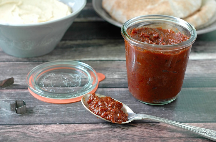 I wasn’t disappointed. I used about a tablespoon on top of some hummus that I had made a few days earlier, and the combination was delicious. The spiciness of the harissa added just the right kick to the earthiness of the chickpeas. Indeed, I was enjoying myself so much that I thought it would be a shame not to share the experience. But since my venue for sharing is a blog rather than a visit to my kitchen, the only way to share is either to send you in search of your own tub at a nearby grocery store (likely not possible since I believe Cava’s harissa is sold only in the Washington, D.C. area) or to provide you with a recipe so you can make your own at home (the better option because, well, making your own is a lot more fun).