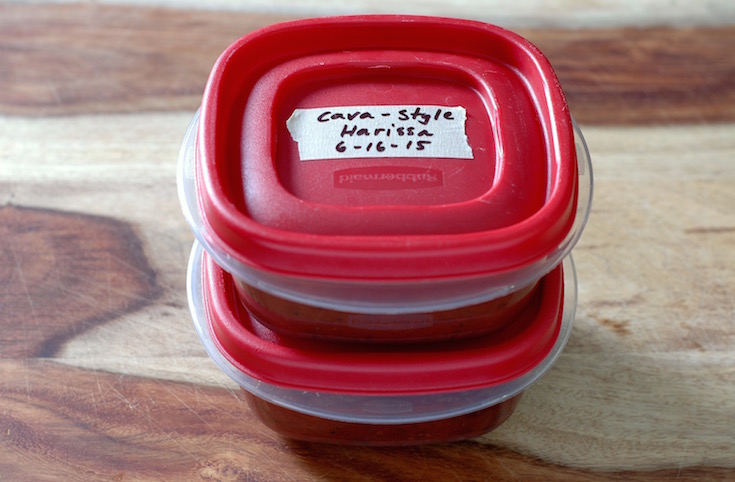 Recently, I ran across yet another option for inducing chile pepper nirvana. During a visit to a local grocery store, I discovered tubs of harissa, a paste made of chiles and spices that is believed to have originated in Tunisia but is now a staple of cuisines across all of North Africa and in some Middle Eastern countries as well. In this case, the harissa was the version used to top the rice and salad bowls sold at Cava Mezza Grill, a Washington D.C.-based chain of fast casual restaurants serving Greek-inspired foods in a salad bar-type assembly line similar to that used by Chipotle. Since I always opt for a dollop of harissa on my visits to Cava, trying it out at home was a no brainer.